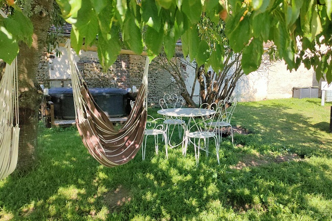 J'ai particulièrement apprécié les hamacs accrochés à l'ombre du grand cerisier, qui m'a bien protégé des chaleurs de la fin de juillet, et les excellents repas pris en compagnie des autres hôtes.
